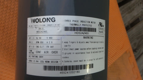 Carrier HD52AR465 Condenser Fan Motor Wolong HD54AH460 HD52AZ465 HD54AH465 460V