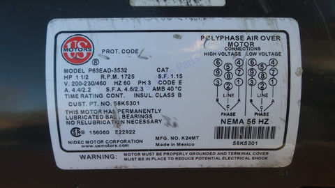 Lennox 58K53 Blower Motor 58K5301 P63EAD-3532 1-1/2 HP 1.5 230V 460V 3PH Fan NEW