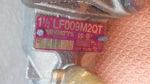 Watts LF009M2-QT 1 1/2 Reduced Pressure Zone Valve 1-1/2 RPZ Backflow Preventer