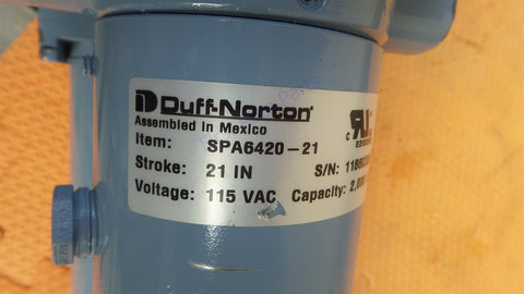 Duff-Norton SPA6420-21 Linear Actuator 21" Stroke 115V 2000 lb 21 inch SPA NEW