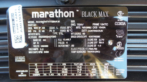 Marathon Y543A Motor 184THTY7726 Black Max 5HP Inverter Duty 230V 460V 3PH Y543