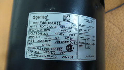 Reznor 207734 Fan Motor F48U34A13 RZ207734 LDAP 400-1200 1 HP 1075 RPM Genteq